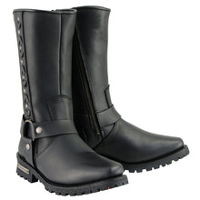 Milwaukee Leather MBM9025 Men's Black Harness Motorcycle Boots with Braid and Riveted Details