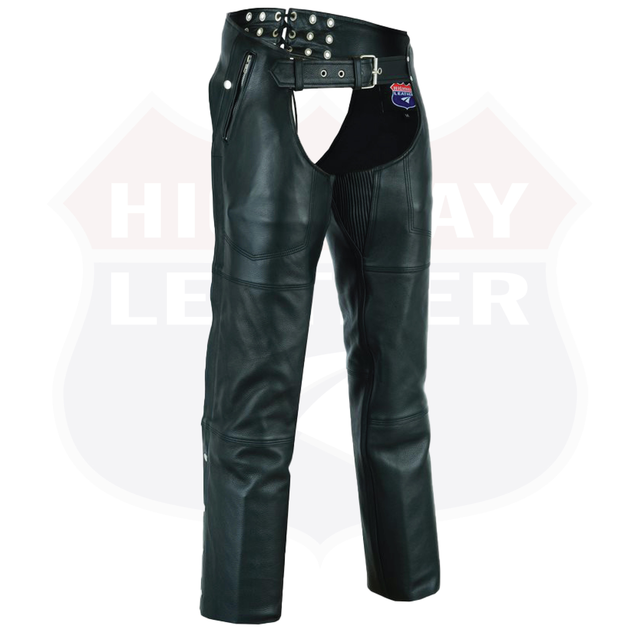 Premium thermal motorcycle chaps made from soft milled 1.2–1.3mm genuine leather, built for Harley-Davidson riders who demand comfort, durability, and style in cold-weather or long-distance rides. Designed with a snap-out thermal insulated liner for adaptable warmth, ribbed stretch inner thigh panels for ease of movement in the riding position, and four ultra-deep thigh pockets to keep essentials secure on the road. Features heavy-duty original YKK zippers with protective buffers to prevent snags, 4-snap boot cuffs for quick on/off, and a laced back waist panel for a perfect adjustable fit. Unfinished bottoms allow custom trimming for length, while non-rusting, non-corroding hardware ensures long-term reliability. A true blend of functionality, comfort, and classic biker style—engineered to meet the high standards of Harley riders.