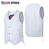 HL3540WHITE Men's Genuine White Leather 7 Pockets Motorcycle Biker Vest ANARCHY White SOA