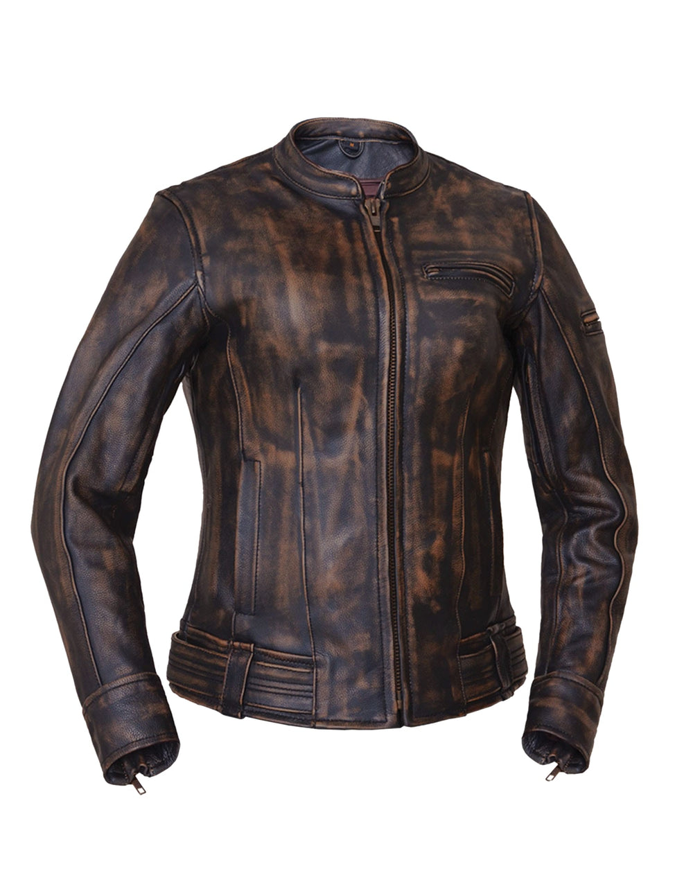- Ladies Nevada Brown Ultra Motorcycle Jacket in drum dyed naked cowhide