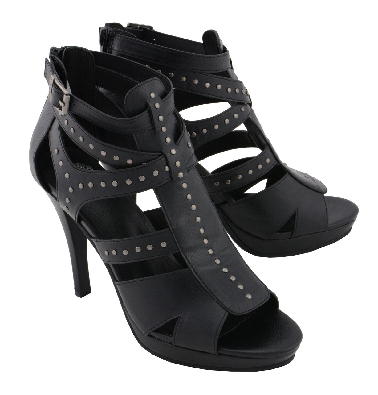 Milwaukee Performance MBL9452 Women's Black Stiletto Heeled Sandals with Studded Ankle Straps