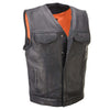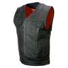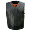 Milwaukee Leather MLM3503 Men's 'Pursuit' Black Premium Naked Goad Leather V Neck Motorcycle Rider Vest