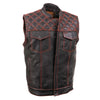 Milwaukee Leather MLM3526 Men's Black 'Paisley' Accented Red Stitching Leather Vest – w/ Armhole Trim Open Collar Design