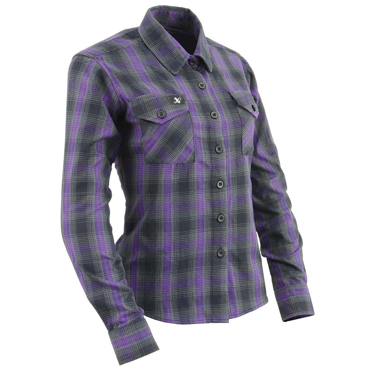 NexGen MNG21603 Women's Casual Black with Purple Long Sleeve Casual Cotton Flannel Shirt