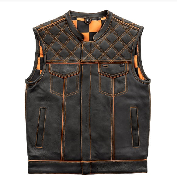 ORANGE M050 | Orange Checker - Men's Motorcycle Leather Vest