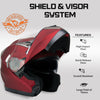 Milwaukee Helmets MPH9826DOT 'Ionized' Flat Red Advanced Motorcycle Modular Helmet for Men and Women Biker w/ Drop Down Visor