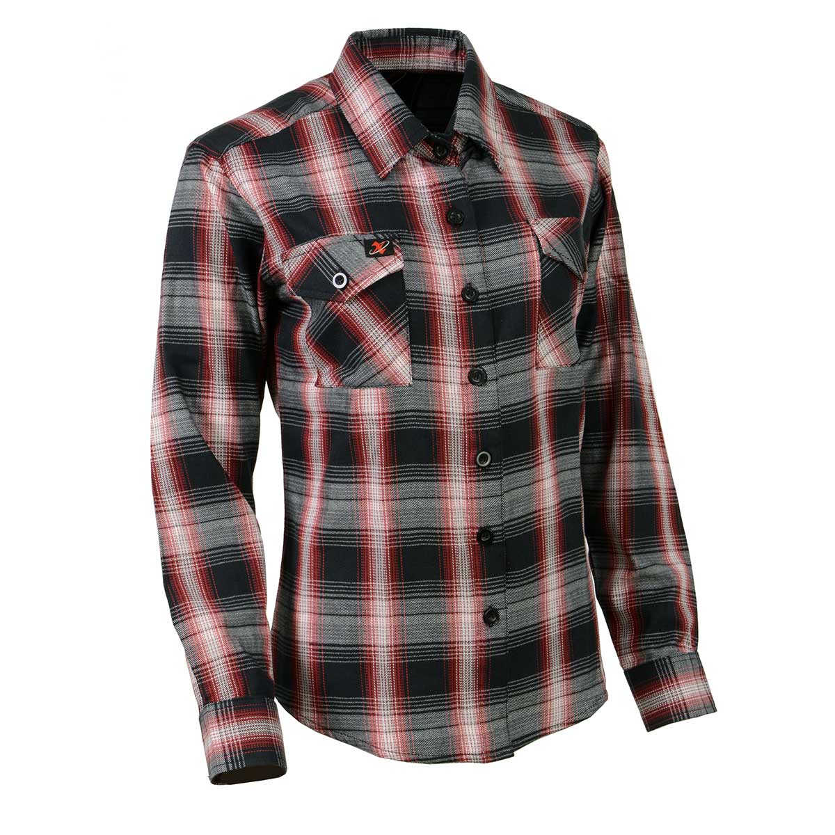 Milwaukee Leather MNG21613 Women's Black and Red with White Long Sleeve Cotton Flannel Shirt
